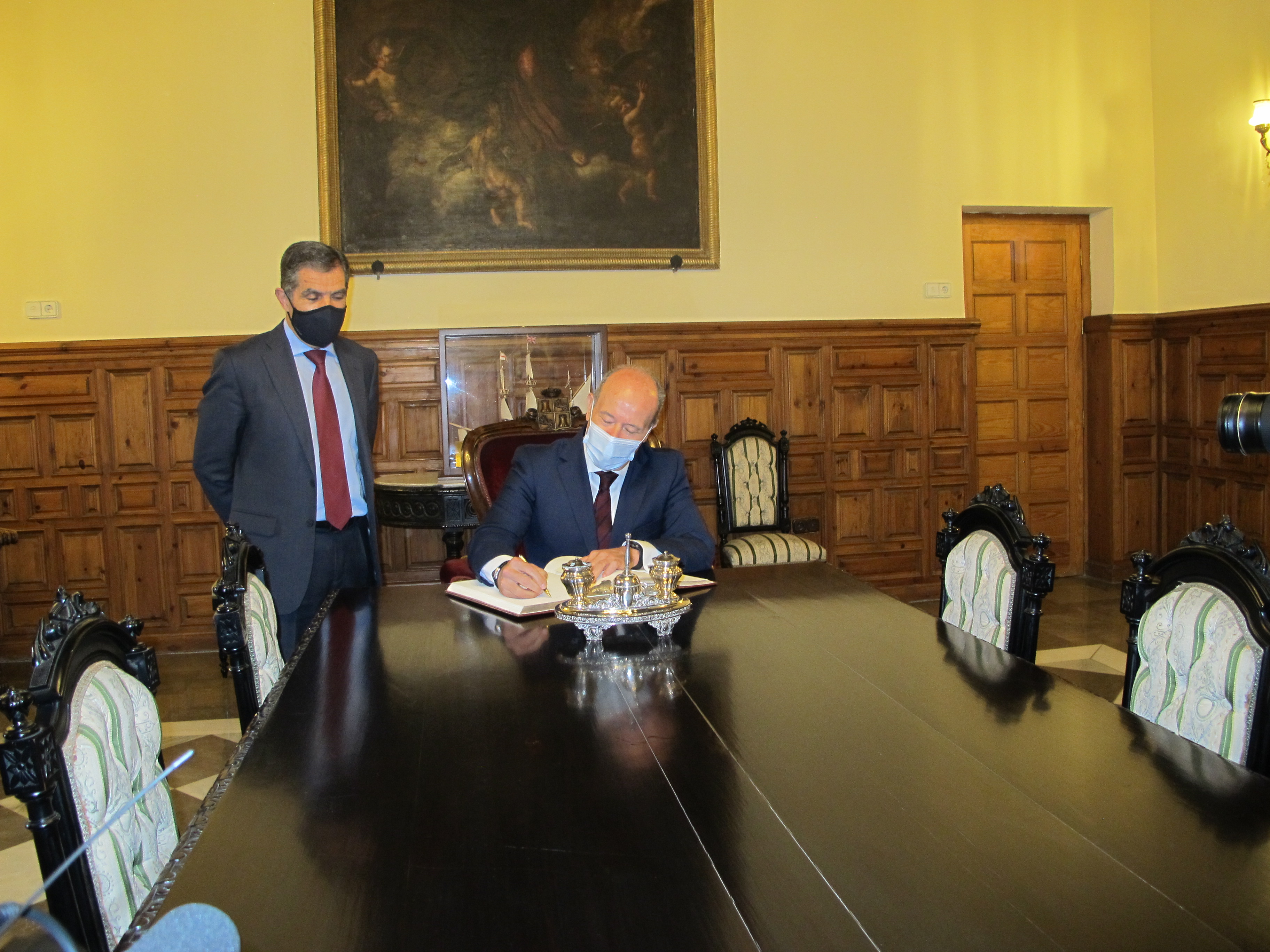 Antes de la reunión, el Ministro de Justicia ha firmado en el libro de Honor del Tribunal Superior de Justicia de Andalucía y ha mantenido un breve encuentro con el presidente del TSJA, Lorenzo del Río.