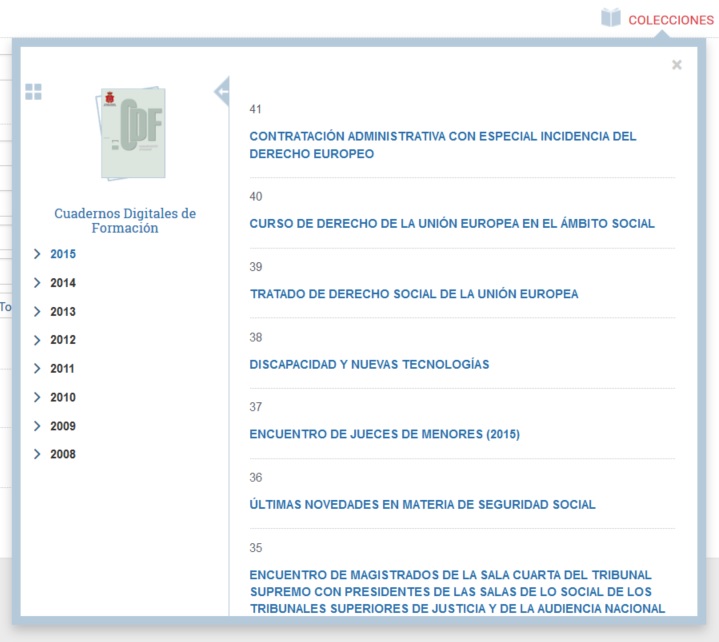 - Despegable que permite seleccionar una de las colecciones de clasificación de las publicaciones.