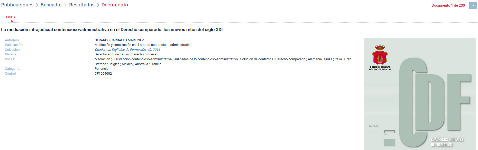 - Cuadernos de Derecho Judicial / Monografías: Son publicaciones de carácter extraordinario que se recopilan bajo este epígrafe dentro de la colección anterior.